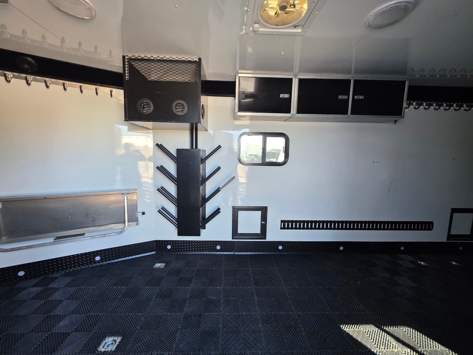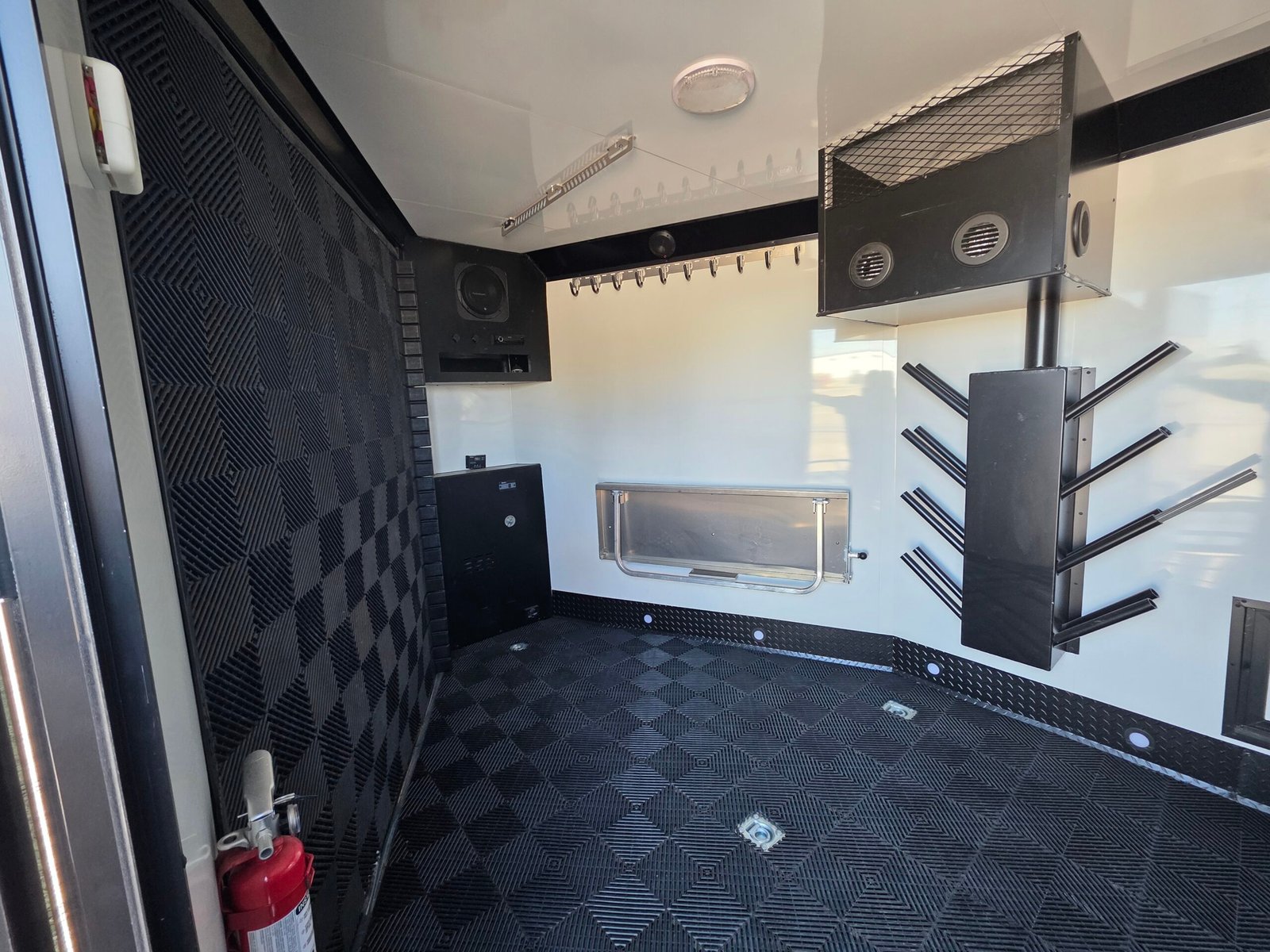 | Features | Heat, Stereo, tables, boot dryers, Poly floor |